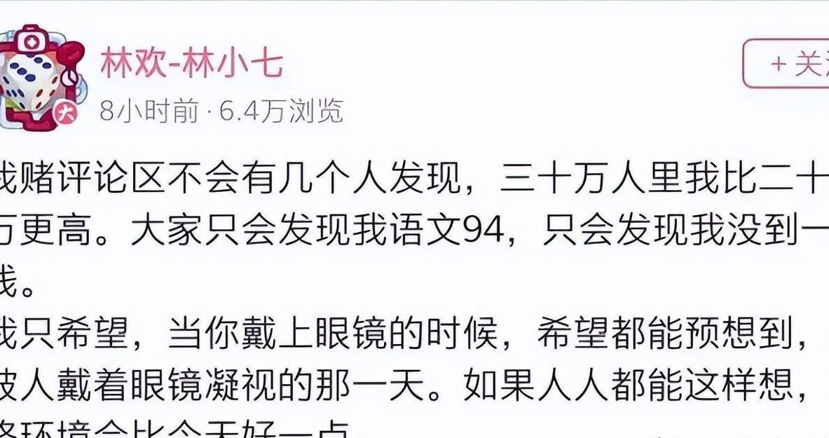 这样的事情不禁让大家感到好奇,很多人对林欢进行了持续关注,想知道态度如此傲慢的杭高学子最终究竟能拿到多少分的成绩。