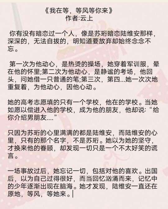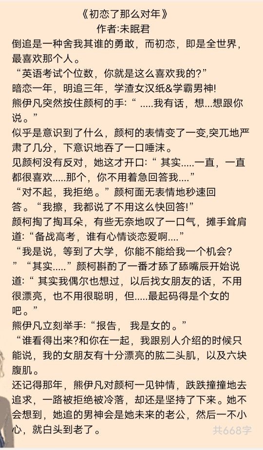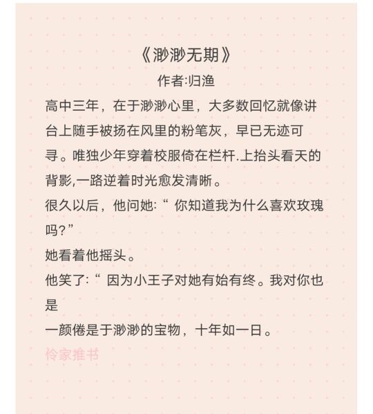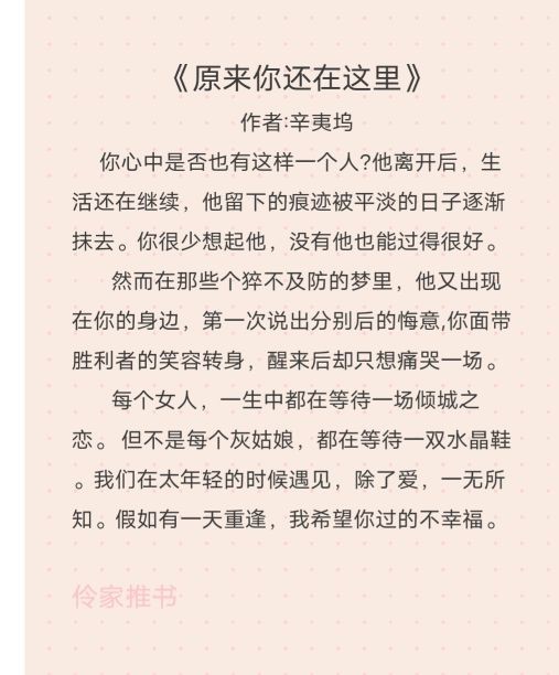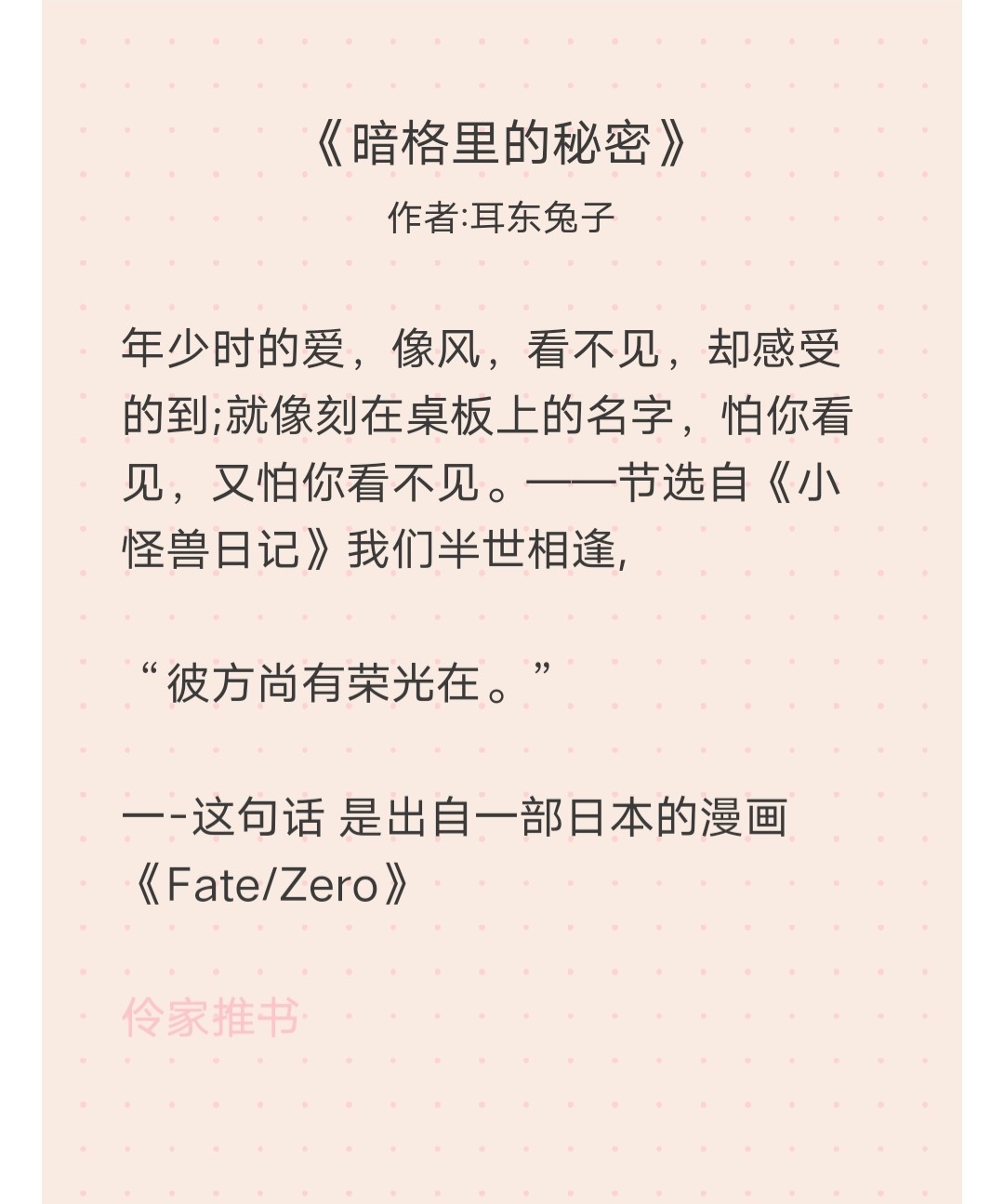 好了今天的小说就推到这里啦,如果还有其他好看的暗恋小说,小伙伴们记得跟伶家分享喔。