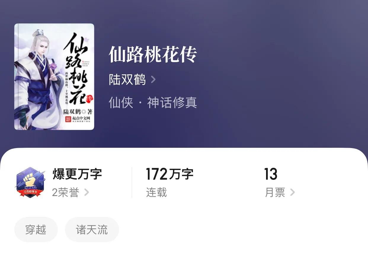 笫五本 《仙路桃花传》 作者: 陆双鹤 字数:172万