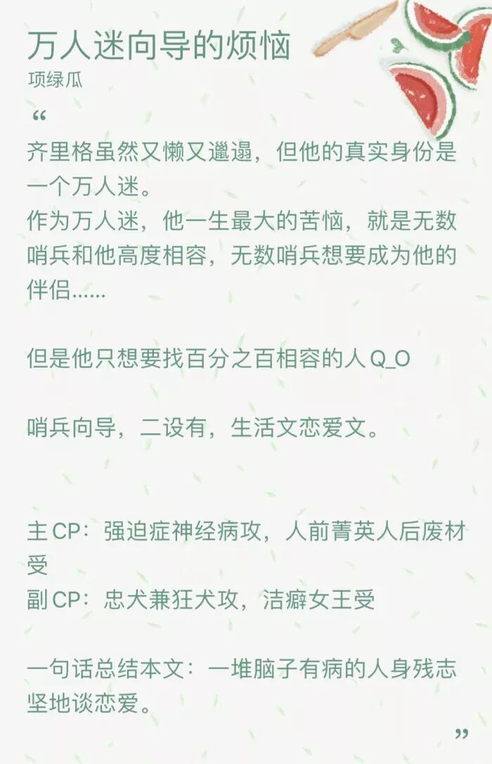 受是个低级向导,他们这一类向导被人称为“卫生巾”,因为需要随时上前线拼命却没有固定哨兵,像卫生巾一样用了就扔,属于不被哨兵呵护一不小心还要被揍那种。