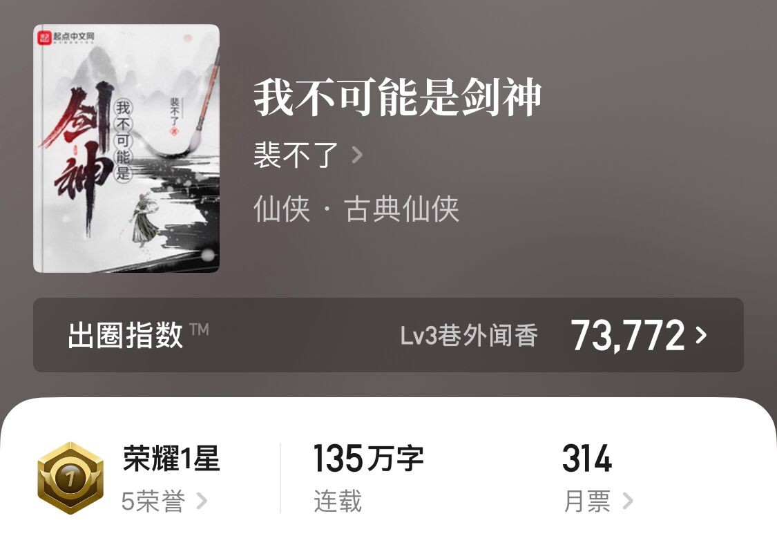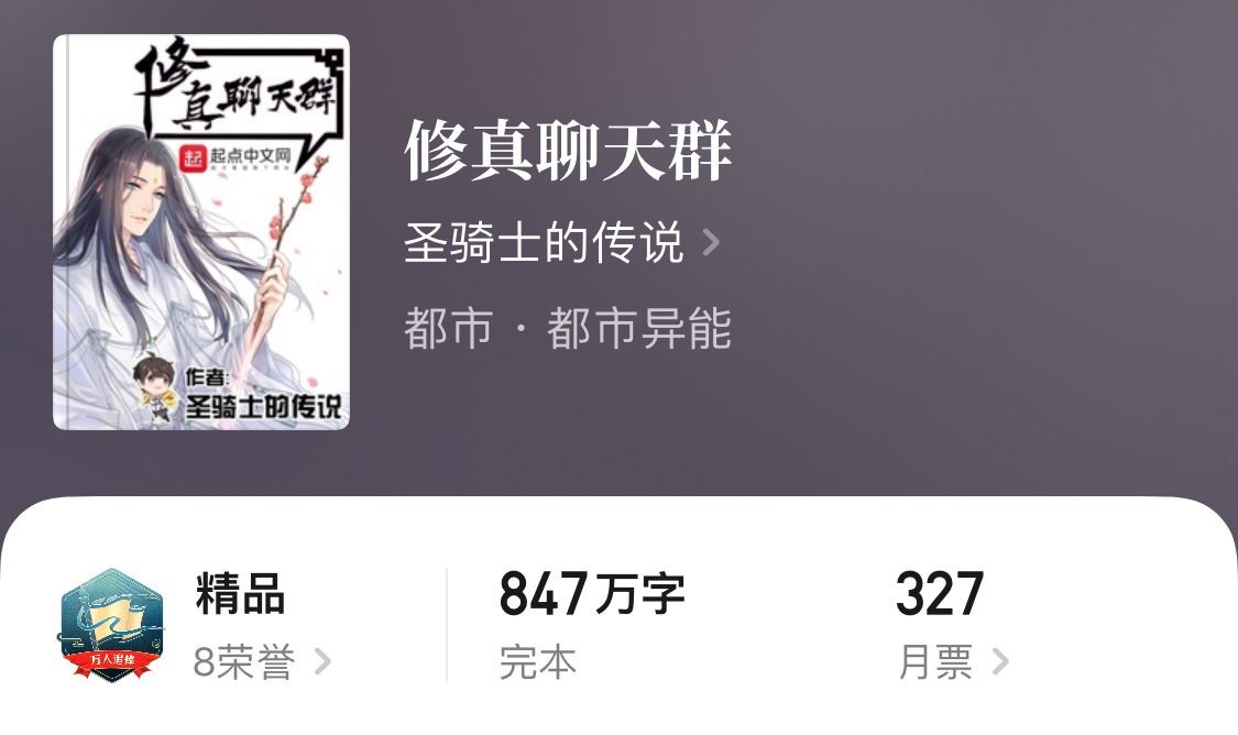 PS:这本书可以说是近期看到的相当不错的一本仙侠文,书的剧情、节奏以及人物都很对味。唯一的问题是作者身体不太好,更新较慢,连载党老铁们可以养一阵看一阵。