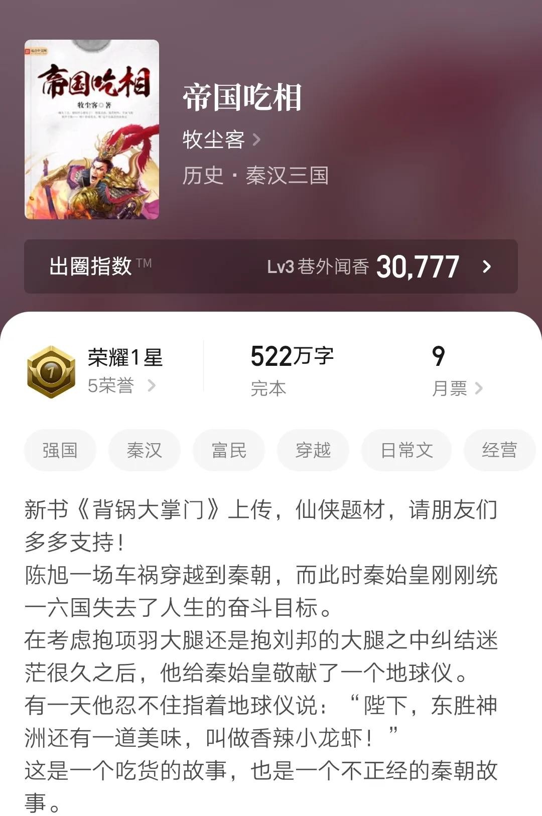 这一期就到这里了,全部都是和秦有关的小说,希望有您喜欢的作品,如果有遗漏,也请大家给我补充,推荐,感谢各位一直以来的支持和关心,提前祝您新年快乐!