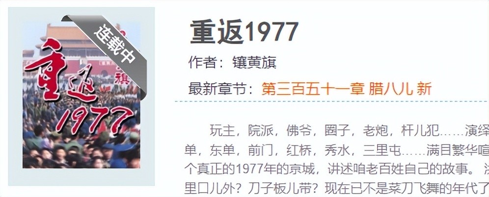 玩主,院派,佛爷,圈子,老炮,杆儿犯……演绎京城江湖, 军帽,仔裤,外烟,彩电,金庸,霹雳舞……历数流行风潮, 西单,东单,前门,红桥,秀水,三里屯……满目繁华喧嚣, 票证,高考,返城,待业,下海,铁饭碗……记述百姓生活。 带你去看一个真正的1977年的京城,讲述咱老百姓自己的故事。 洪衍武语录: 流氓混蛋不混理! 男人不坏女人不爱,咱们不坏吃糠咽菜! 口儿里口儿外?刀子板儿带?现在已不是菜刀飞舞的年代了……
