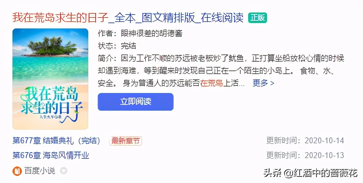 在此类作品影视翻拍方面,外国方面一直都不乏佳作,比较出名的有《鲁滨逊漂流记》、《青春珊瑚岛》、《荒岛余生》、《海角乐园》等等。但在我国,除了黄渤于2018年拍摄的《一出好戏》之外,我对此类作品几乎再也没有任何印象。在这里,小编向大家推荐几部个人觉得不错的网络荒岛题材文学作品,相信它们若改成影视剧的话,一定十分精彩(所推荐小说均已完结,大家可以放心大胆追个痛快。另外个人十分不喜欢在荒岛作品中加入各类玄幻元素,所以此类作品一律PASS)。
