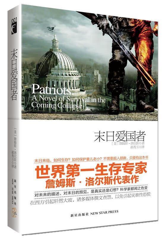 《未日爱国者》作者是詹姆斯·洛尔斯,讲述了股市崩溃、极度的通货膨胀以及合众国政府的错误决策,在一夜之间毁灭了庞大而脆弱的美国式民主,每个美国人都只能独自面对他们的生存挑战。本书作者用半口述的方式串联整个小说,没有任何阅读障碍,也直接扩大了读者群的年龄范围,使之成为部老少咸宜的作品。