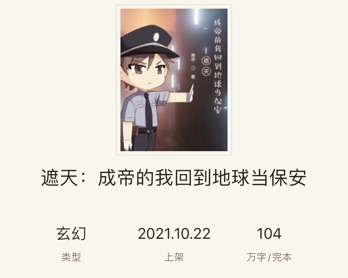 第九本《遮天:成帝的我回到地球当保安》作者瘫帝