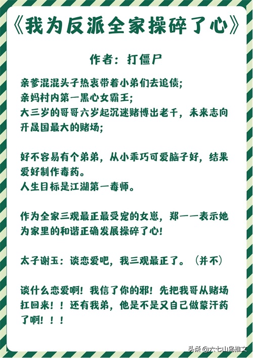 女主在机缘巧合之下发觉自己的家人走的全是反派路线,幡然醒悟过来的她开始操心全家,想把全家拉回正道,平安度过一生。
