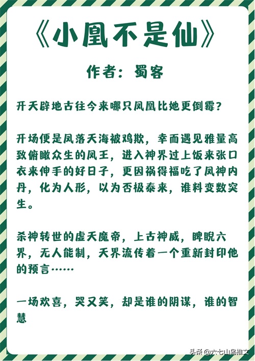 这是一本经典仙侠文。女主是一只凤凰,男主是大魔王。女主前期还是一只凤凰跟在男二身边并喜欢着他,而后不经意间服了一颗内丹化成人形,不久后男二的白月光回来了,女主就离开了,随后为了躲避追杀寻求了男主的庇护。