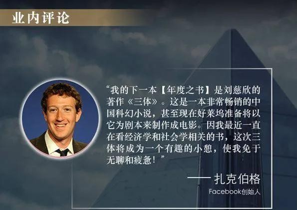 二、Facebook创始人扎克伯格是个三体粉,说:“他把我从最近所读过的经济、社会、科学书籍中解脱出来,令我感到轻松愉悦”。