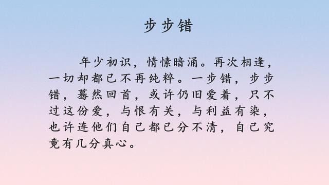 今天为大家推荐蓝白色的3本完结小说,文字简洁通透,文笔淡然,张弛有度,细腻处委婉动人,《步步错》《无爱承欢》《半欢半爱》都好看,强烈推荐!