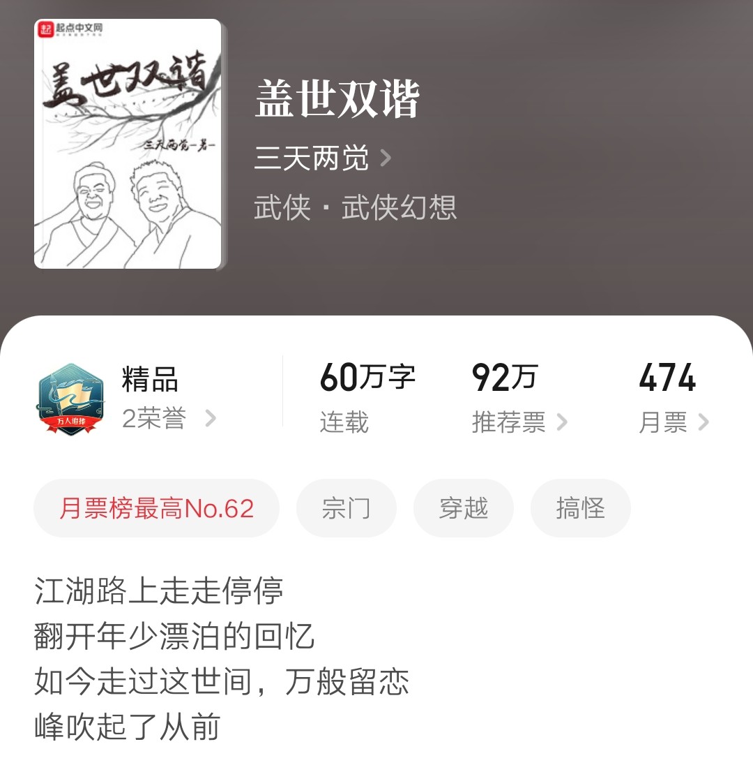 其实,在三天两觉签约之前,他就一直在b站发视频,开直播。小说更新也一直被戏称为“三天两更”,其余时间在做视频积累灵感,顺便外出去取材什么的。甚至,在之前就有读者笑称三天两觉写网文是副业,这回终于成真了!