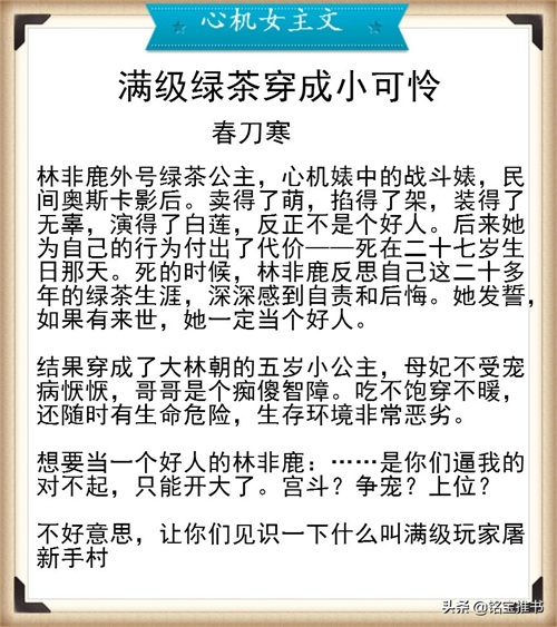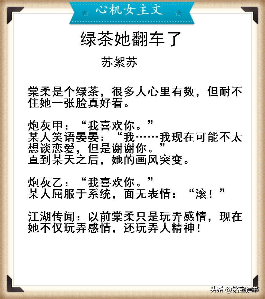 推荐四本心机女主小说,女主变成绿茶女,白莲花也很可口