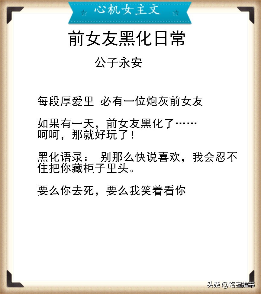 这是一部黑暗系快穿文,女主前期被各种虐,但是没有关系,穿越回来给你虐回去,全程心机毫无破绽,内心戏看的特别过瘾。从前没有得到过的宠爱后期全部加身,简直是现代版的公主级别待遇,越看越起劲,强推!
