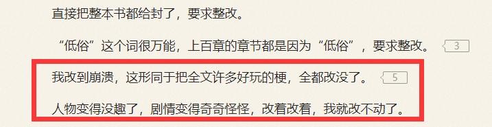 甚至在后来的大整改中,这本小说还被下架了,一直修修改改,直到去年的11月份才重见天日。期间据作者太上布衣透露,几乎是改到崩溃,把许多好玩的梗都改没了,人物变得没趣,剧情也是奇奇怪怪!