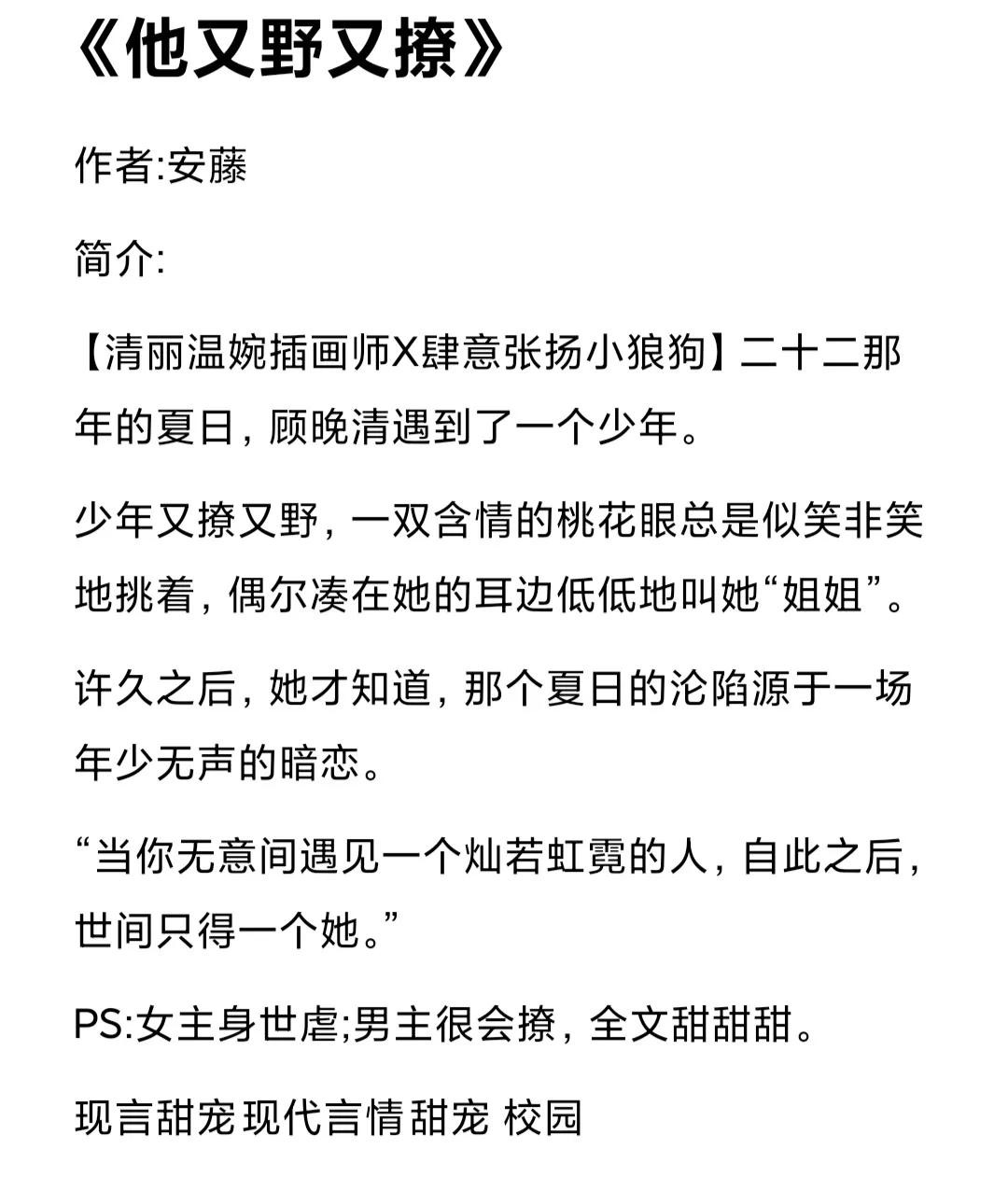 清丽温婉的插画师姐姐和肆意张扬的高中生弟弟!主动出击的弟弟,直接打直球!太会撩了!这本只有21万字,很短