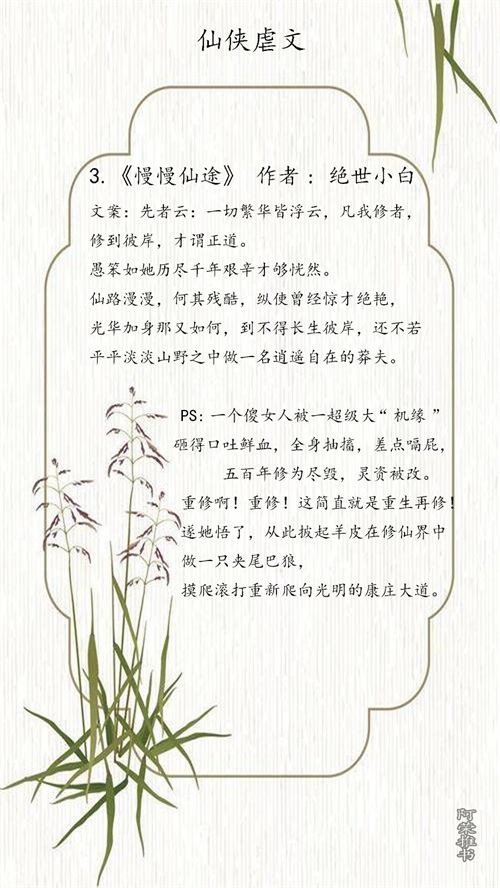 在我心目中的修仙文不同于仙侠文。仙侠文更多的关乎神仙历劫,爱恨情仇之类的!