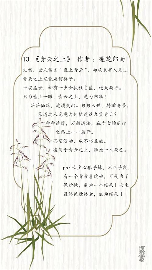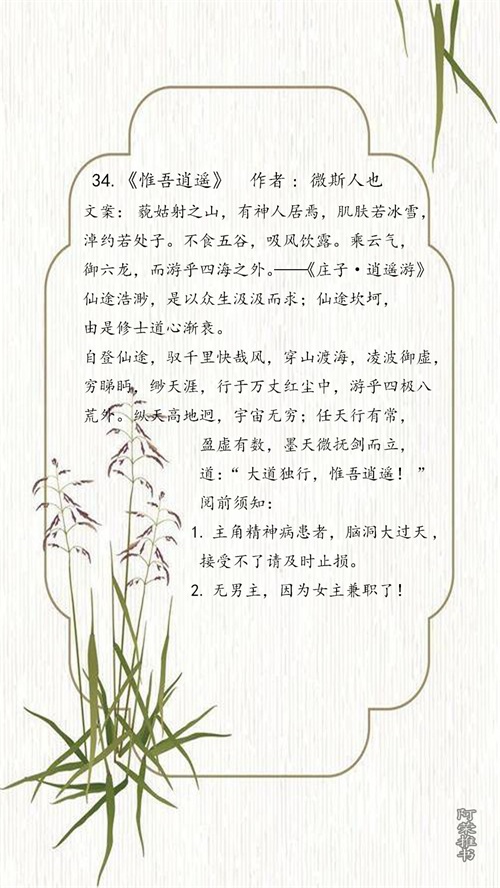 今天小编整理了以往看过的女频休仙小说。喜欢就请转发和收藏!