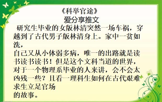 推荐理由:女穿男,科举文