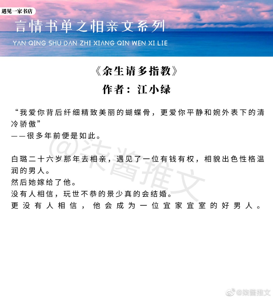 九本高质量男女主相亲日久生情小说,半相亲两生欢喜余生请多指教