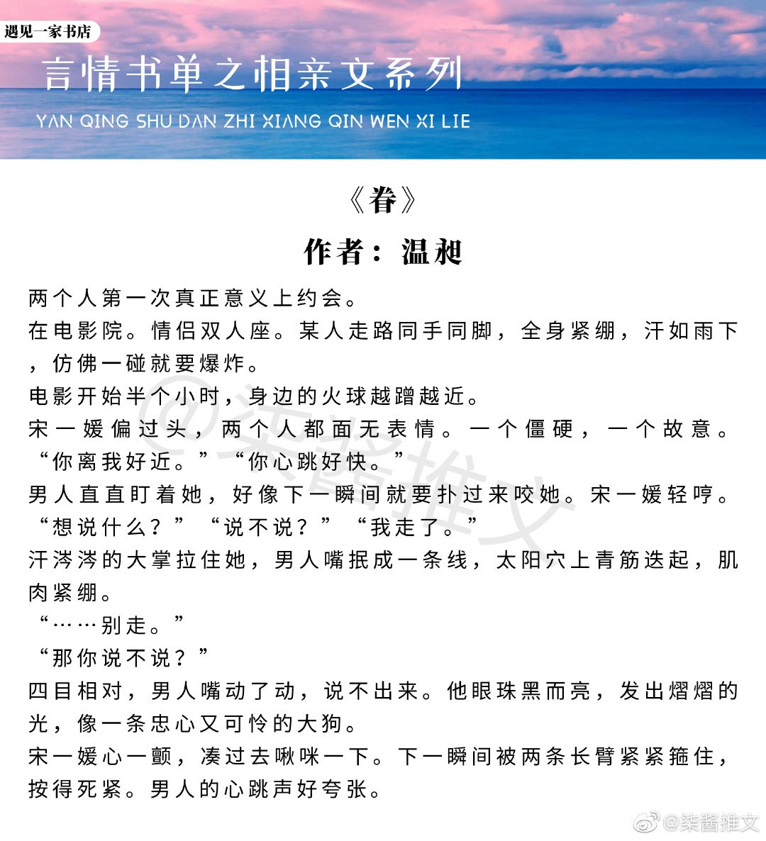「两本蓝色狮的小说」与《锦衣之下》类似;推《锦云遮,陌上霜》 前两本是蓝蓝色狮的小说,第三本不是。 她很清醒,她只是他的一枚棋子,却沦陷于他亦幻亦真的温柔冢。 他提醒...