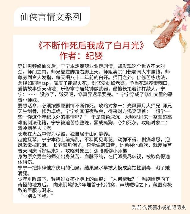 重活一世,意外看到了一直跟随的男主。回忆杀甜中带酸,让人和女主一样又期待又抗拒。作者抖出的几个包袱脑洞大开,圆的一点都没让人失望,强推!5本超好看的仙侠言情文,本欲问道求飞升,仍困三界红尘里