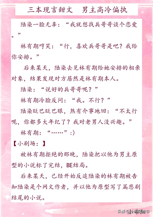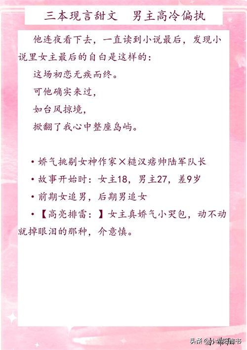 今天推荐三本现言甜文,男主高冷偏执,前两本前期女追男,后期男追女,后悔不已。第三本从初始到最后都很甜。