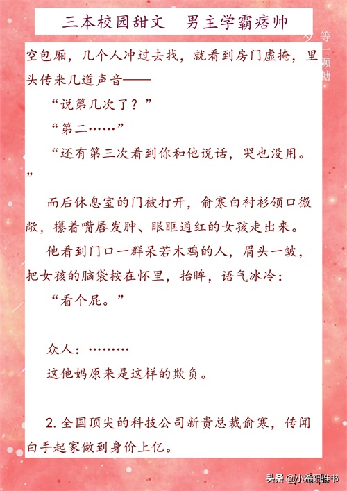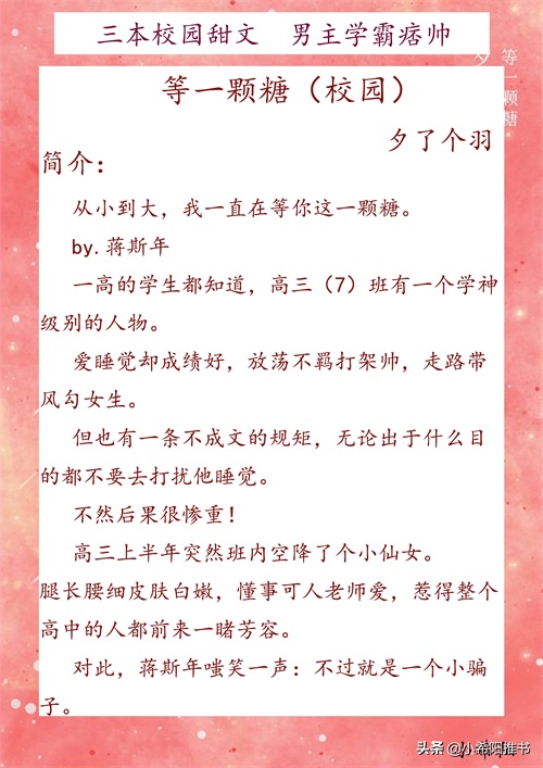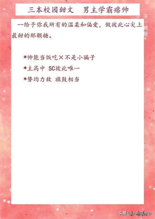 今天推荐三本校园甜甜文,男主痞帅高冷型,学霸谈恋爱的独特方式,你永远体会不到。