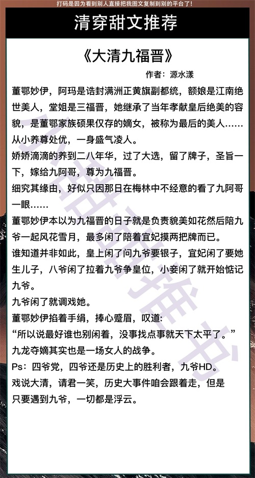 这期给大家推荐的是8本清穿系列甜文!