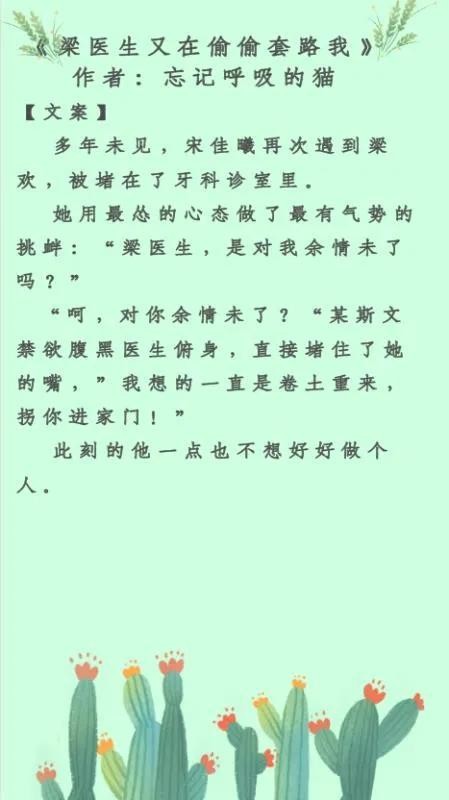 《梁医生又在套路我》刚完结不久的新文,超甜,梁医生腹黑又宠女主,属于别后重逢,强推。